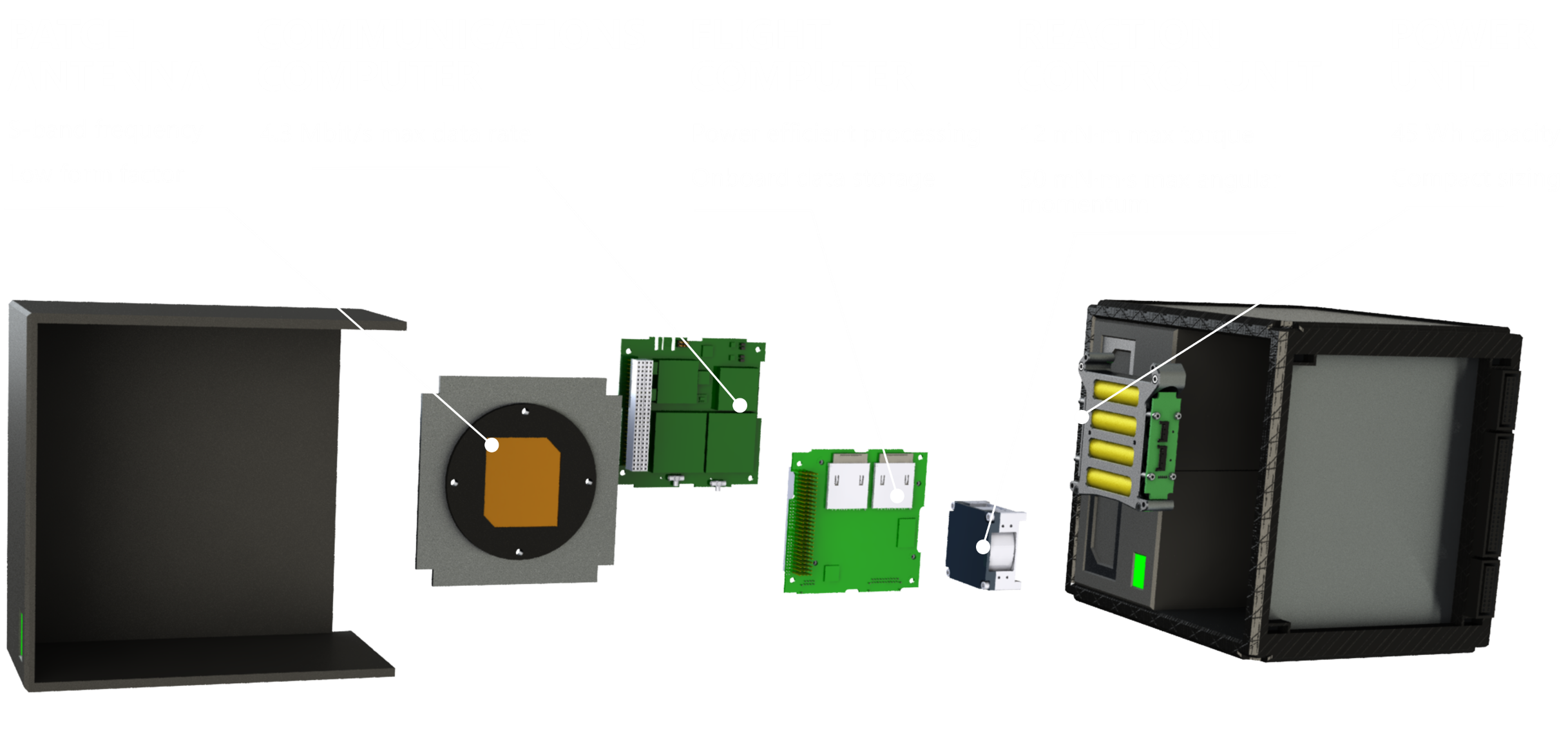 Allows customized modules to be installed on the MCS, widening the capability of the platform also enpowering the Satellite Sharing Service. Each module has a capacity of 1.5 Cubesat Units and a load weight of 1.5 Kilograms